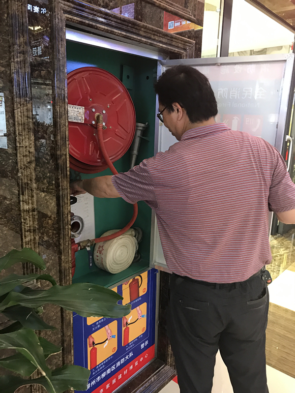 在參觀考察過程中,彭廣華書記一行詳細了解了公司安全生產責任制落實、規章制度建設、消防安全制度及落實、安全生產措施部署等情況,并對用電線路、消防泵、滅火器、消防卷簾是否完好,消防通道是否暢通等進行全面細致的檢查,對柳州家居的消防安全工作表示肯定。