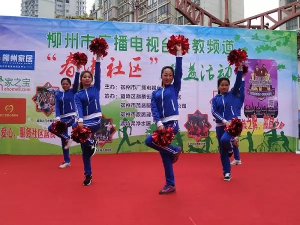 每場進社區活動必唱的《播霸之歌》今天當然也不能少,不同以往的是,這些曼妙的伴舞都是來自柳州馨藝舞蹈培訓中心的漂亮妹紙喲!看,咱們朱朱多享受、多賣勁。