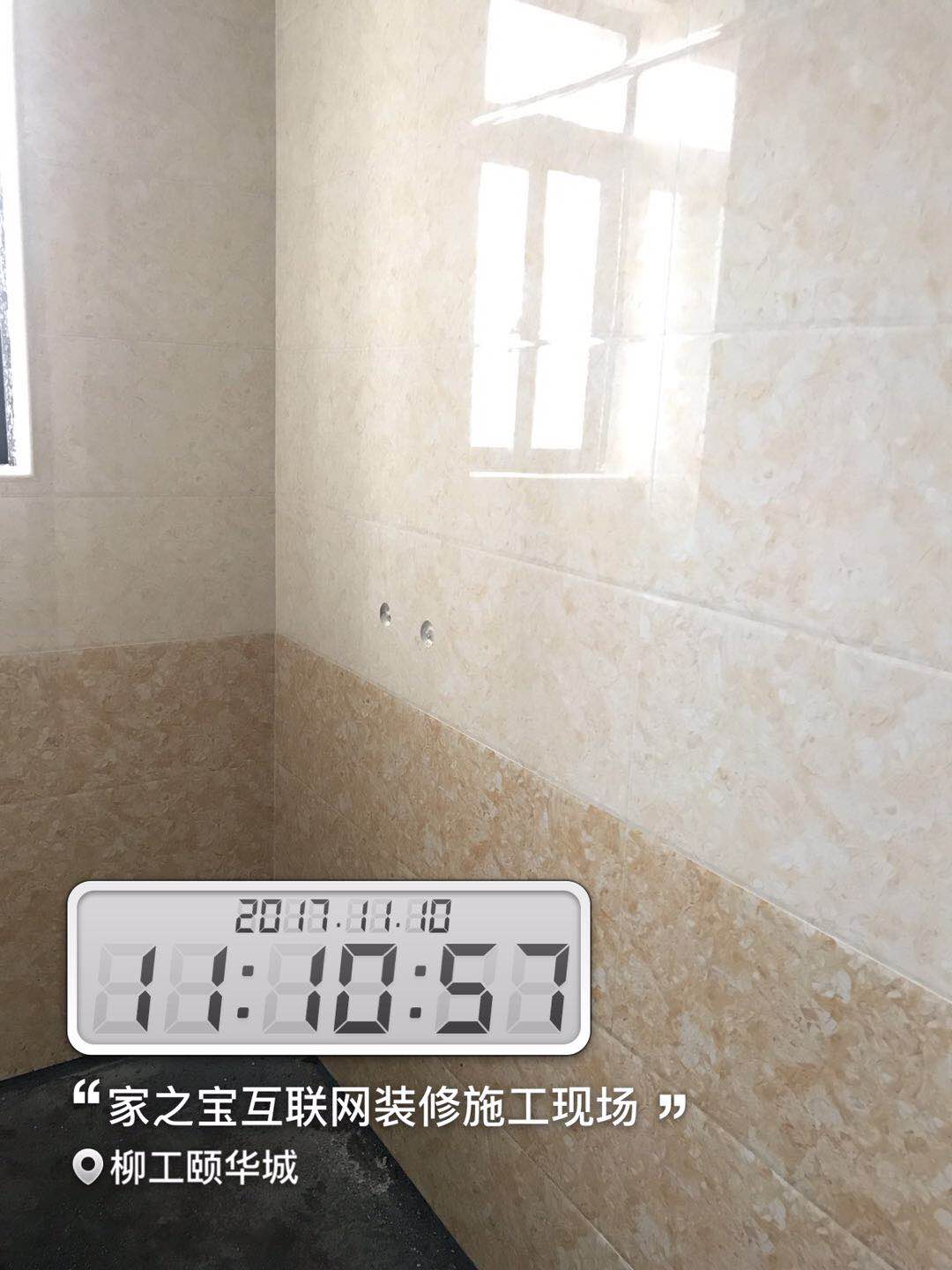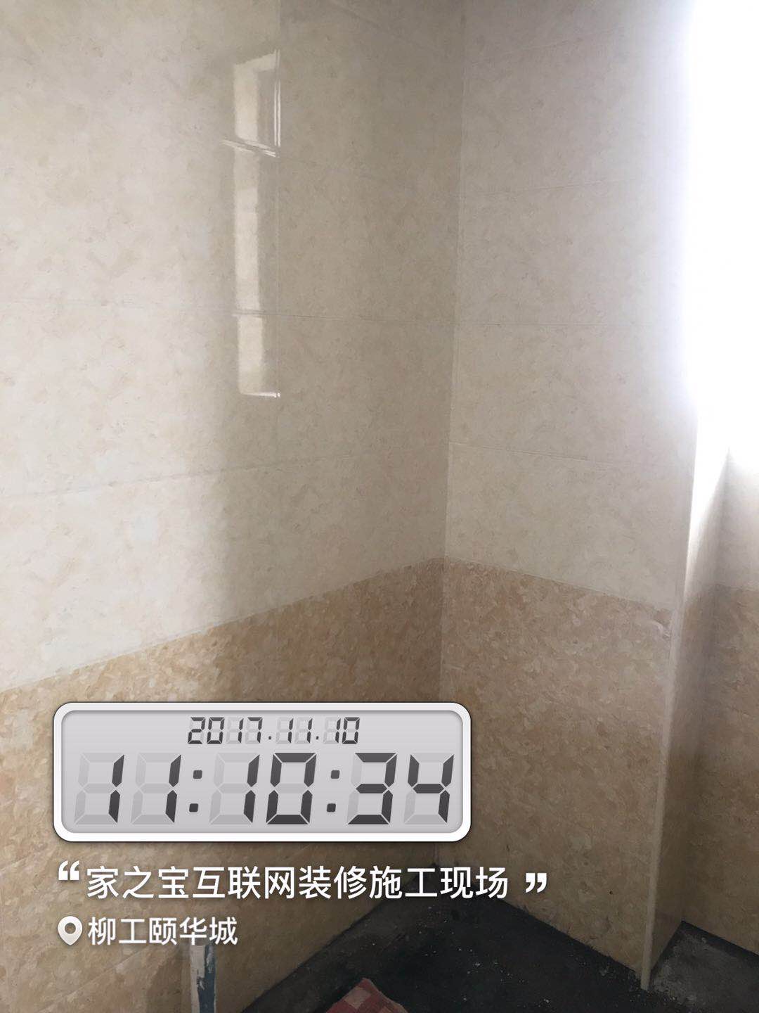 • 墻磚鋪貼,使用水平儀投射水平線,陽角處采用磨邊45°碰角工藝。