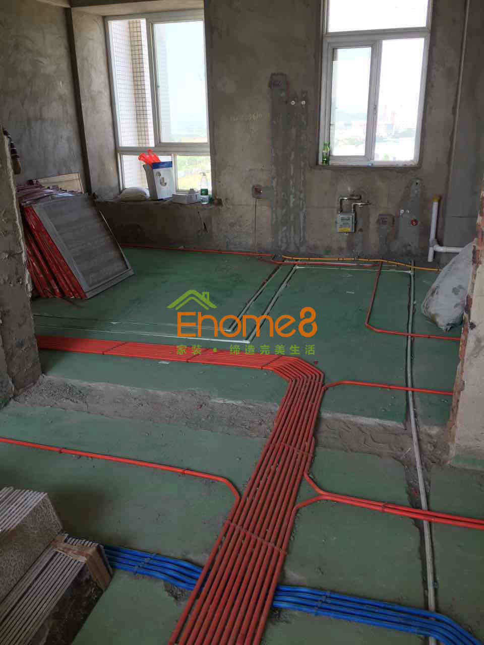 地面綠環地固的涂刷及水電材料的配送
