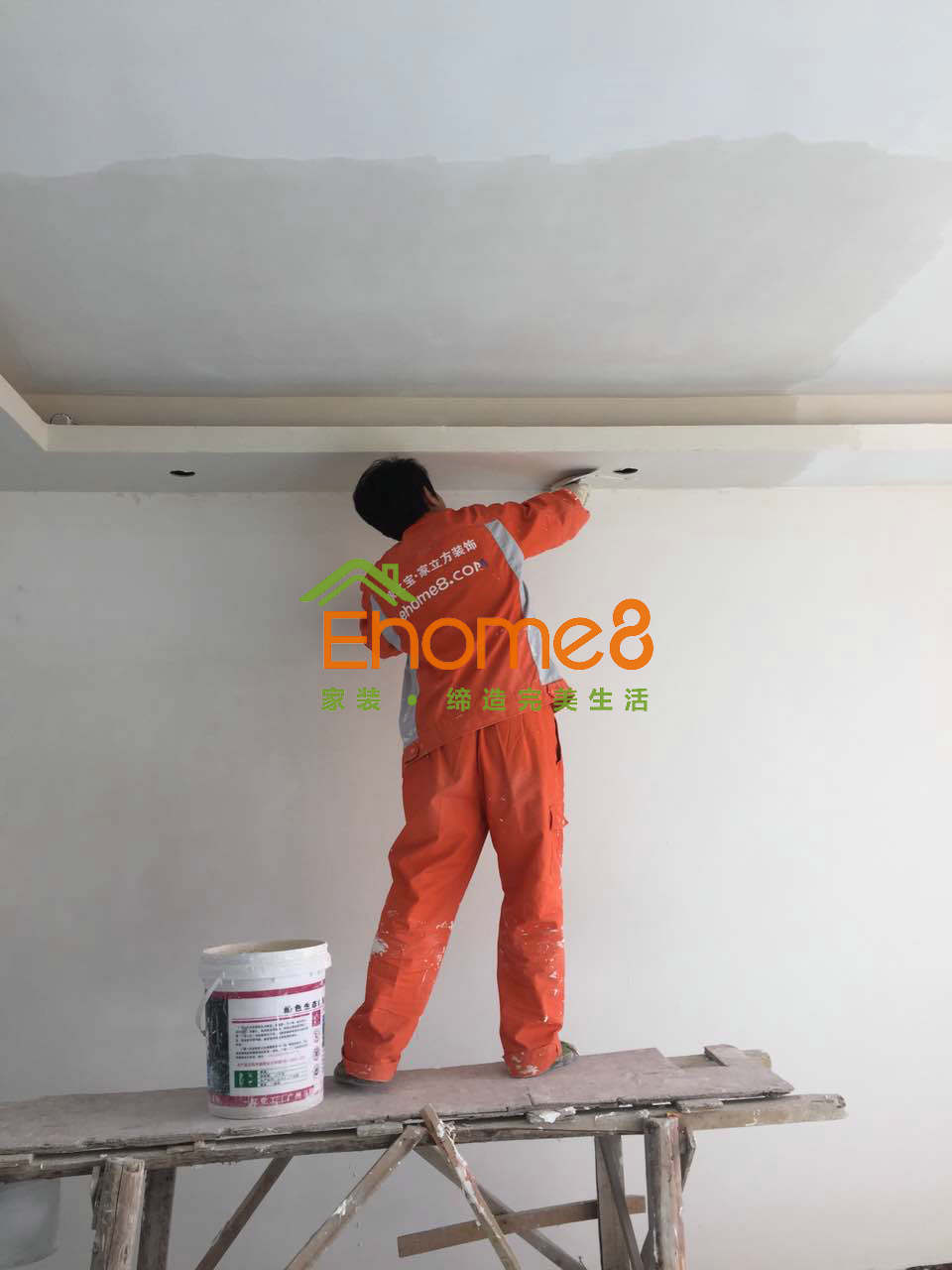 批刮膩子,平整墻面、涂刷乳膠漆