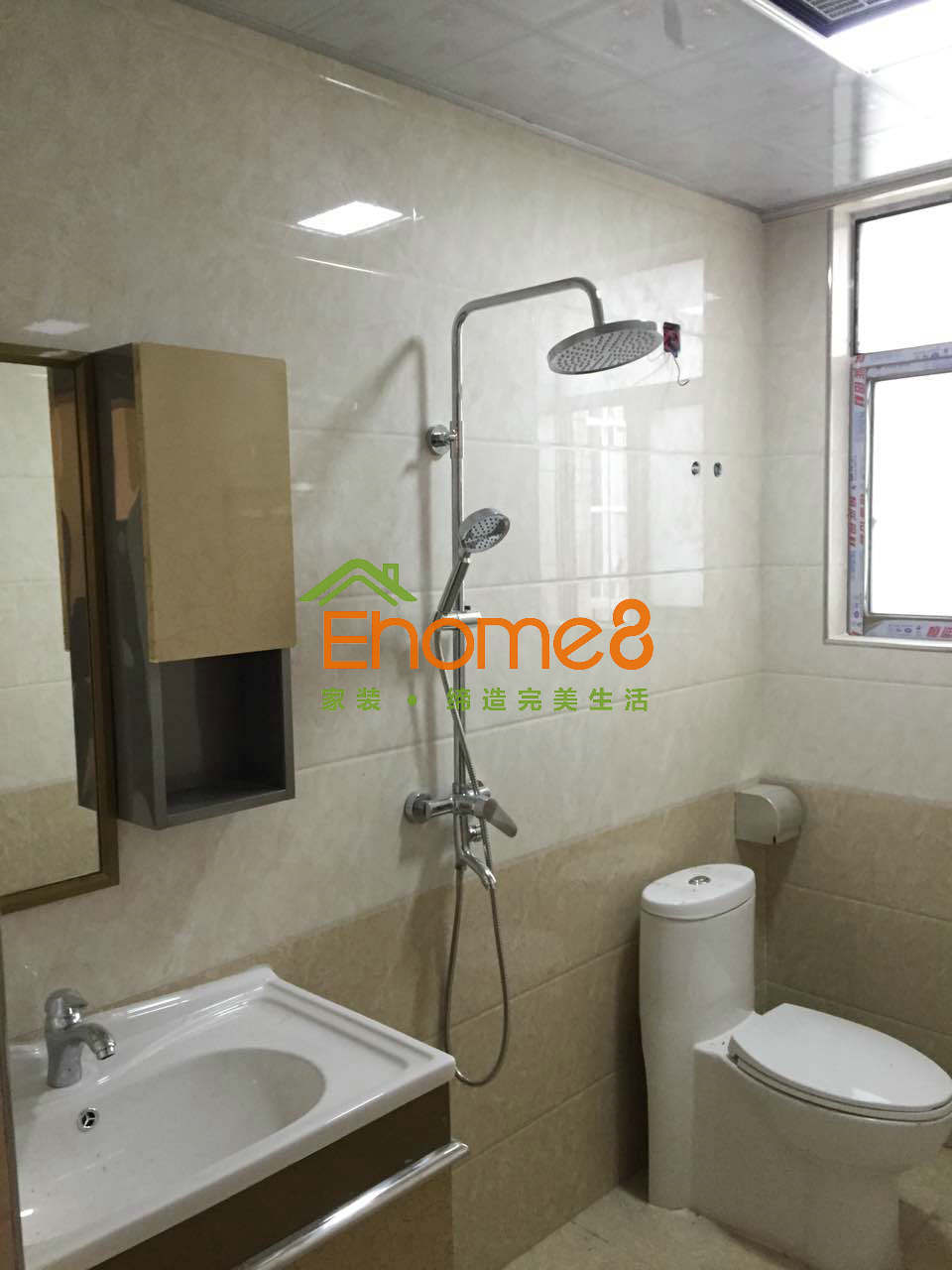 衛生間門安裝及衛生間有色防水的涂刷及閉水試驗,鋪磚完成。