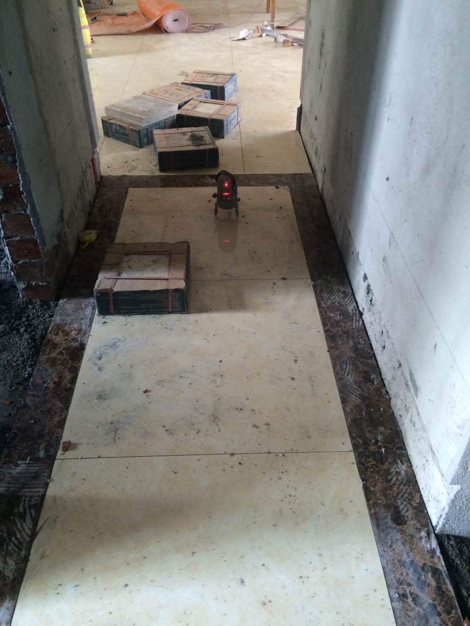 瓦工施工,平整對縫,鋪貼完畢即刻進行成品保護,鋪好地膜