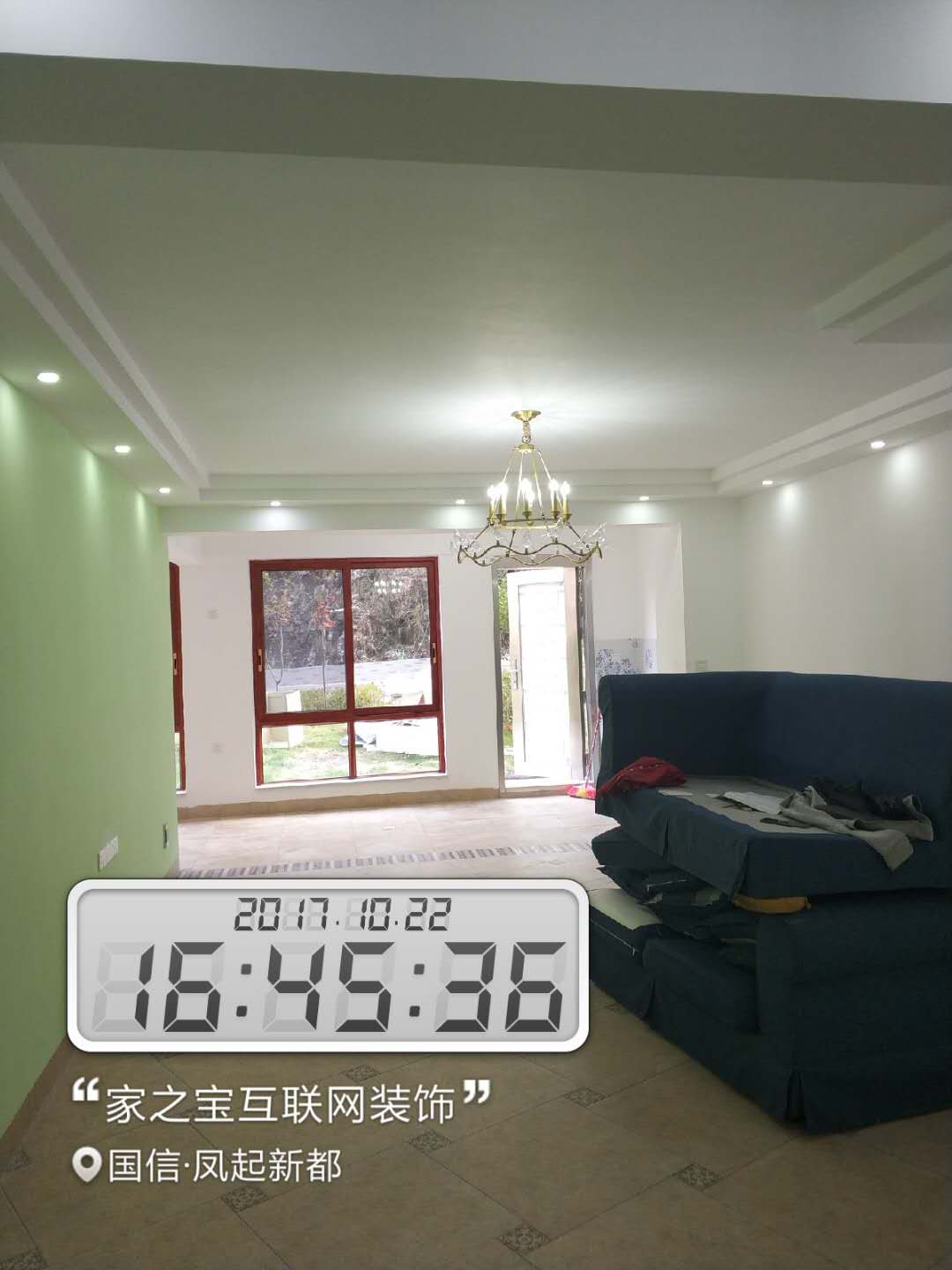 墻磚鋪貼,使用水平儀投射水平線,陽角處采用磨邊45°碰角工藝。